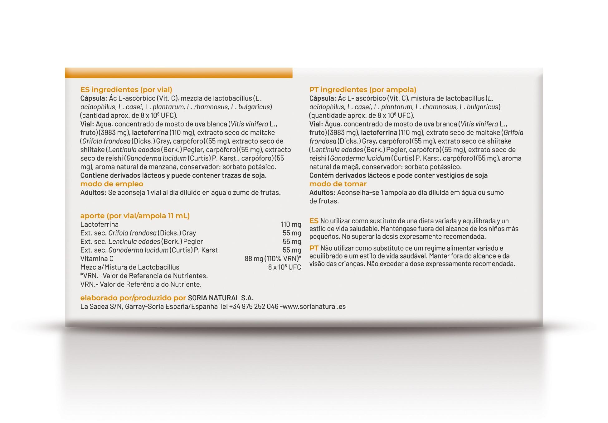 (3983 mg), lactoferrin (110 mg), dry extract of maitake (Grifola