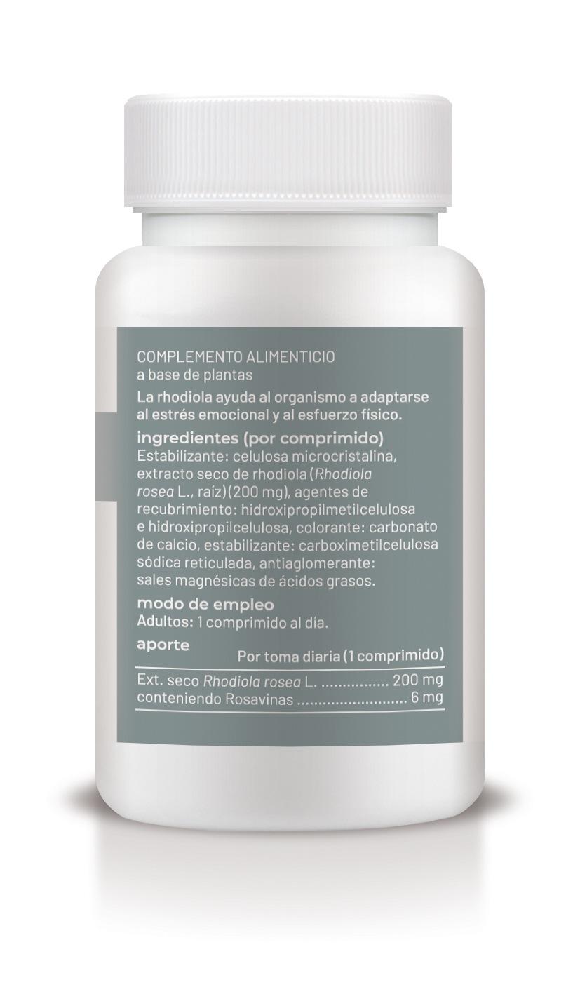 Per tablet: Stabilizer: microcrystalline cellulose, dry extract of Rhodiola (Rhodiola rosea L., root) (200 mg), coating agents: hydroxypropylmethylcellulose and hydroxupropylcellulose, colors: calcium carbonate, stabilizer: cross-linked sodium carboxymethylcellulose, anti-caking agent: magnesium salts of fatty acids.
