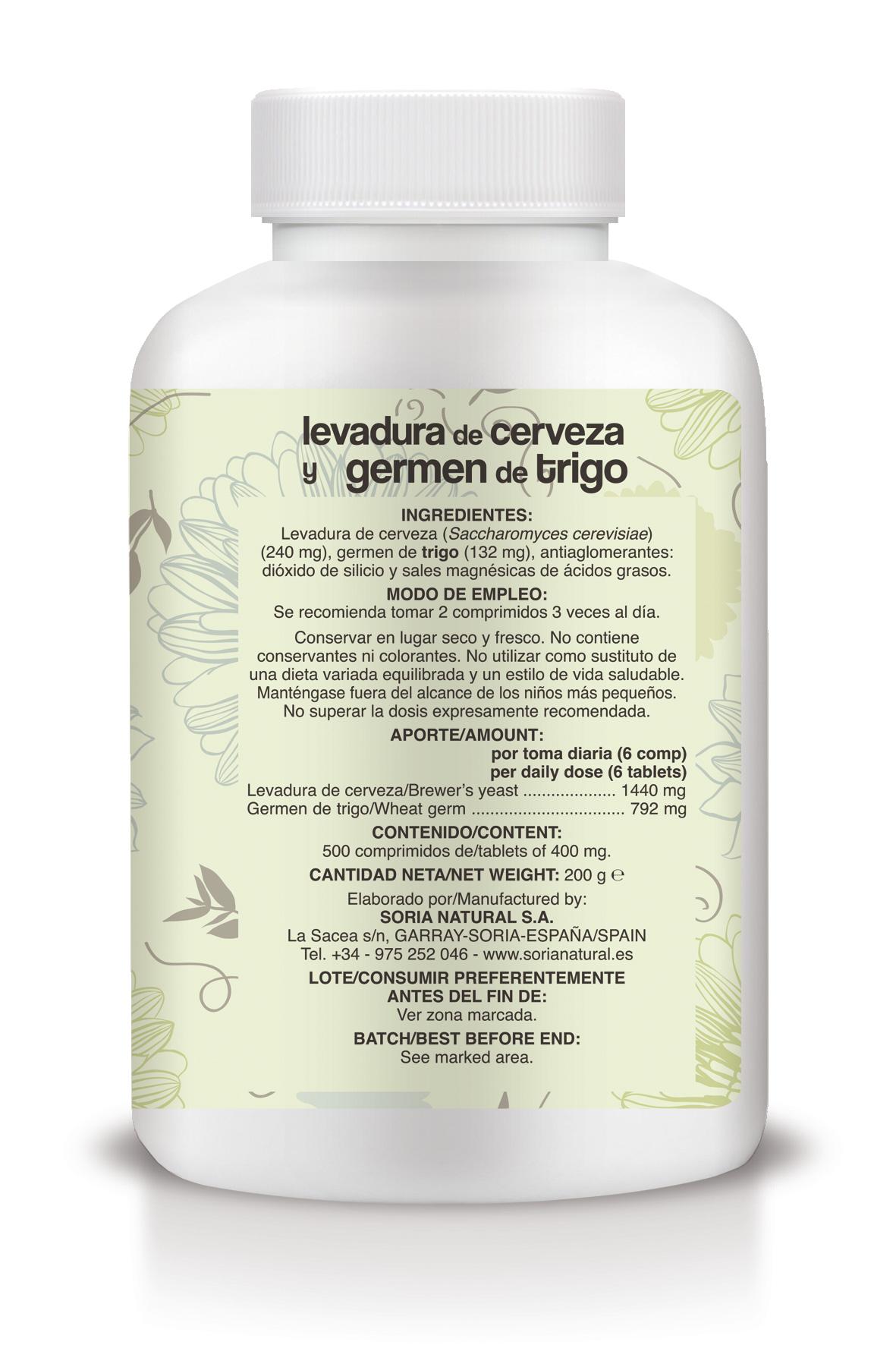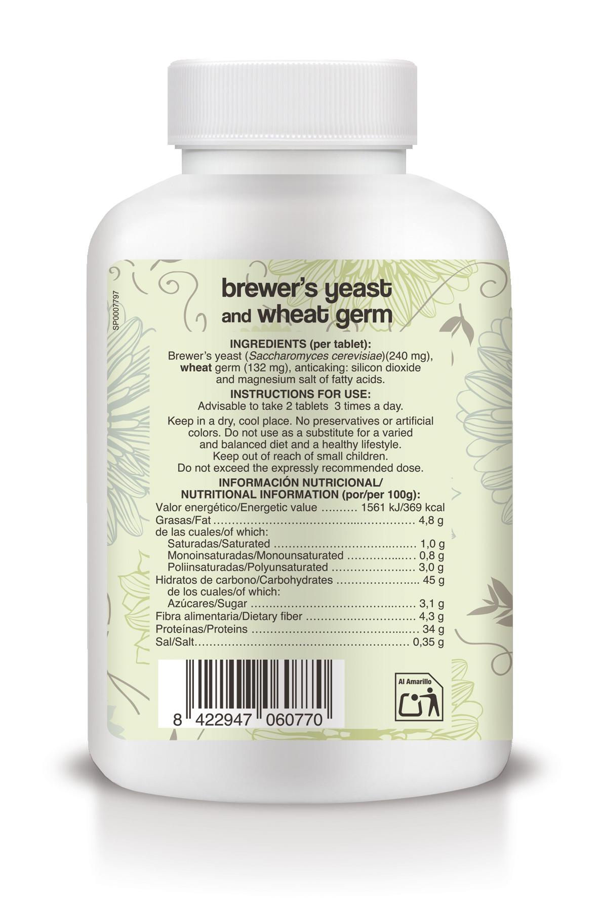 Levedura de cerveja (Saccharomyces cervisiae) (240 mg), gérmen de trigo (132 mg), antiaglomerantes: dióxido de silício e sais magnésicos de ácidos gordos.
