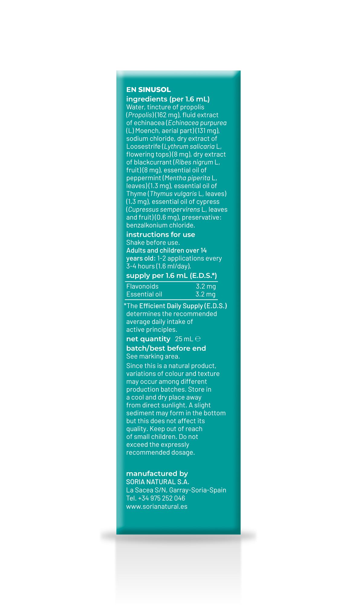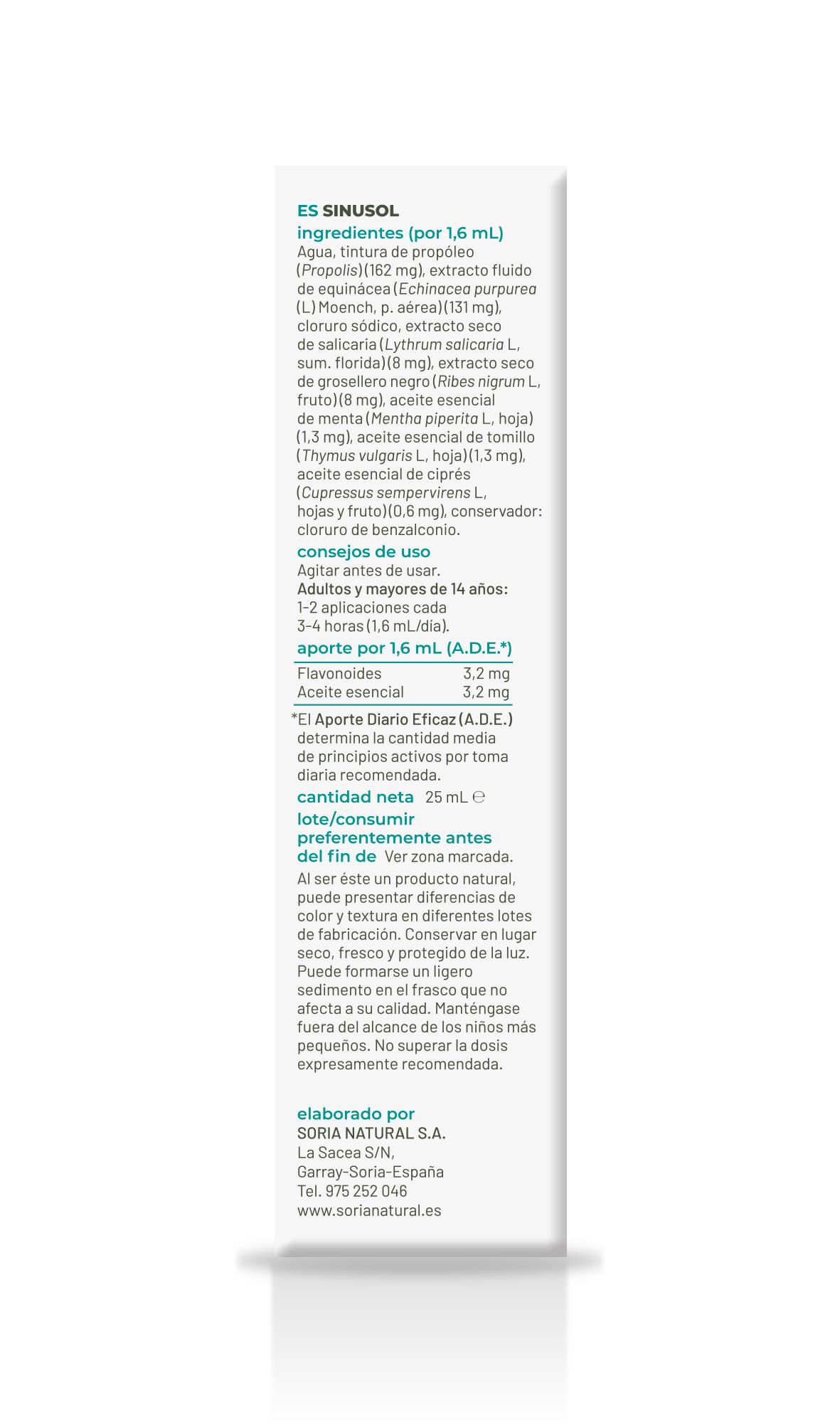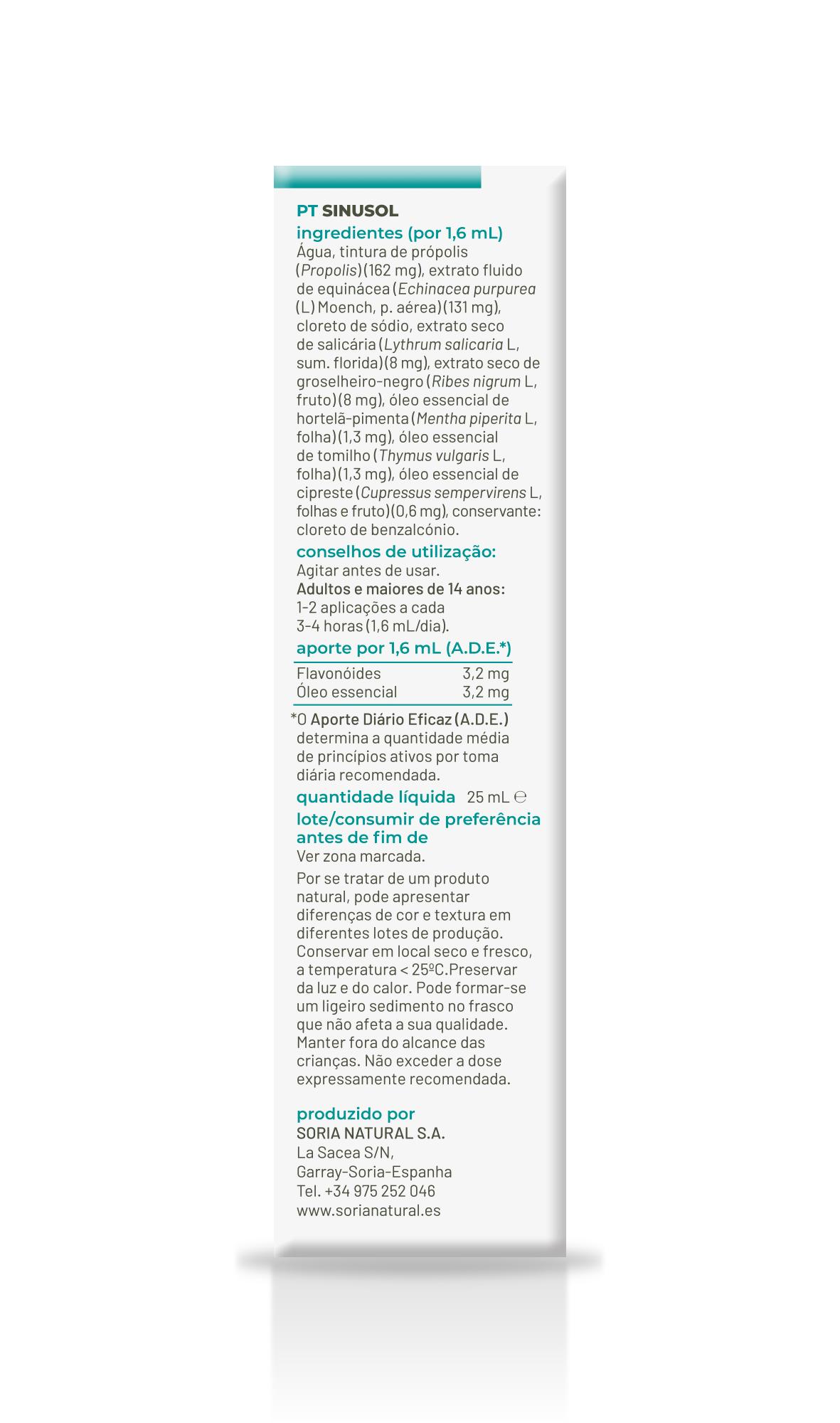 (por 1,6 mL) Água, sumo de limão, extrato fluido de equinácea (Echinacea purpurea (L) Moench, p. aérea) (73 mg), gamma-ciclodextrinas (24,2 mg), extrato liofilizado de groselheira negra (Ribes nigrum L, folha) (21,8 mg), extrato liofilizado de própolis (Propolis) (16 mg), alfa-ciclodextrinas (13,7 mg), cloreto de sódio, extrato liofilizado de salicária (Lythrum salicaria L, sum. florida) (10,6 mg), óleo essencial de menta (Mentha piperita L, folha) (1,6 mg), óleo essencial de tomilho (Thymus vulgaris L, p. aérea) (1,6 mg), conservante: cloreto de benzalcónio